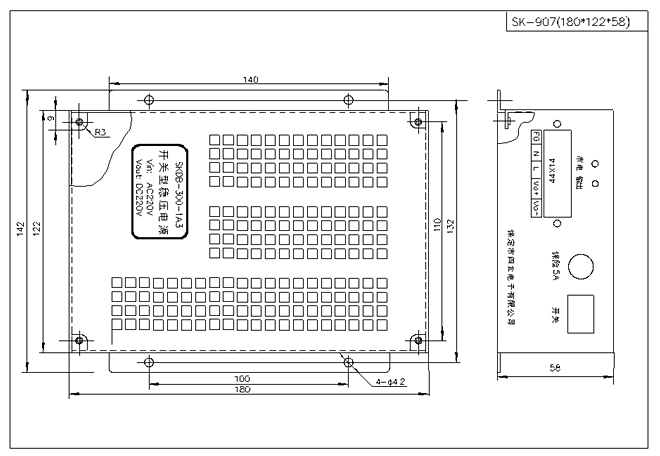 3. 本電源輸入端內接5A保險,開關啟動。
