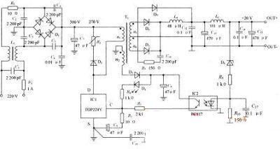 關(guān)于中間部分電路而言,TOP224Y作為PWM操控、鼓勵(lì),都是慣例處理。操控端C的工作電壓取自變壓器的反鼓勵(lì)電壓,其間D3是整流管,D4是發(fā)光二極管,用作輔導(dǎo)燈。C端的反應(yīng)信號(hào)來(lái)自IC2的輸出。芯片的漏極輸出端D連接變壓器和R1,D2,其間R1是半導(dǎo)體壓敏電阻,與D2一起組成芯片限壓維護(hù)電路,防止芯片因過(guò)壓而擊穿。該項(xiàng)電路的鼓勵(lì)方式選用以正鼓勵(lì)為主的正、反混合鼓勵(lì)式,變壓器有4個(gè)繞組,其間2個(gè)是根本類似的輸出繞組n3,n4,它的同名端關(guān)系如圖2所示。
